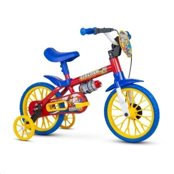 Principais características: - Aro 12 ideal para crianças de 3 a 5 anos - Estrutura leve e resistente, feita para durar - Pneus com cravos para melhor aderência e segurança - Rodinhas de apoio removíveis para aprendizado gradual - Guidão e banco ajustáveis para maior conforto